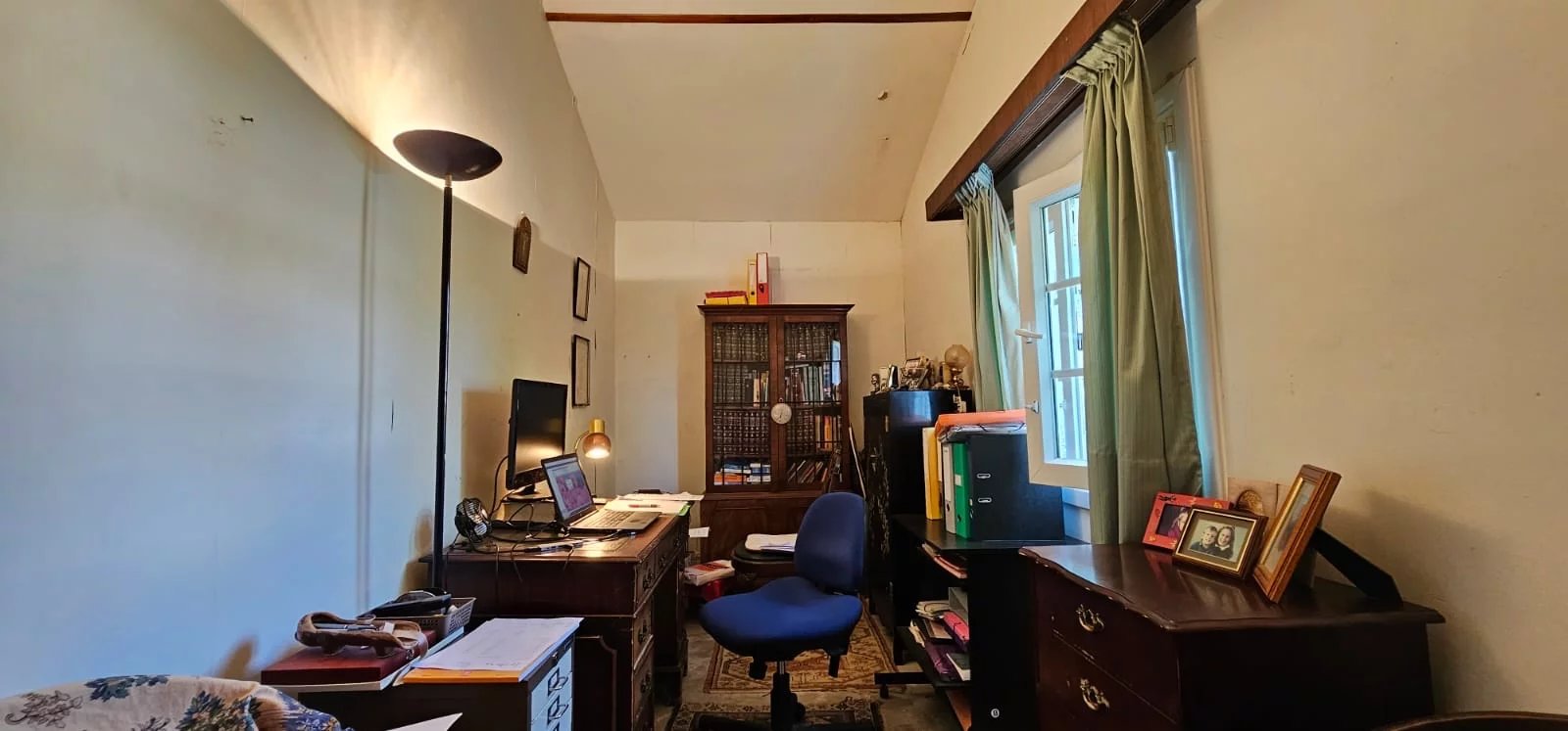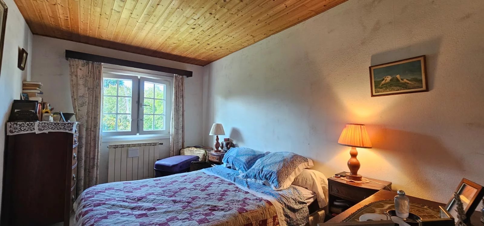 La maison se compose de trois chambres, d’un bureau, d’un espace en mezzanine ainsi que d’une agréable pièce de vie lumineuse donnant directement sur le jardin. L’extérieur, verdoyant et sans vis-à-vis, constitue un véritable atout pour les amoureux de la nature et du calme.